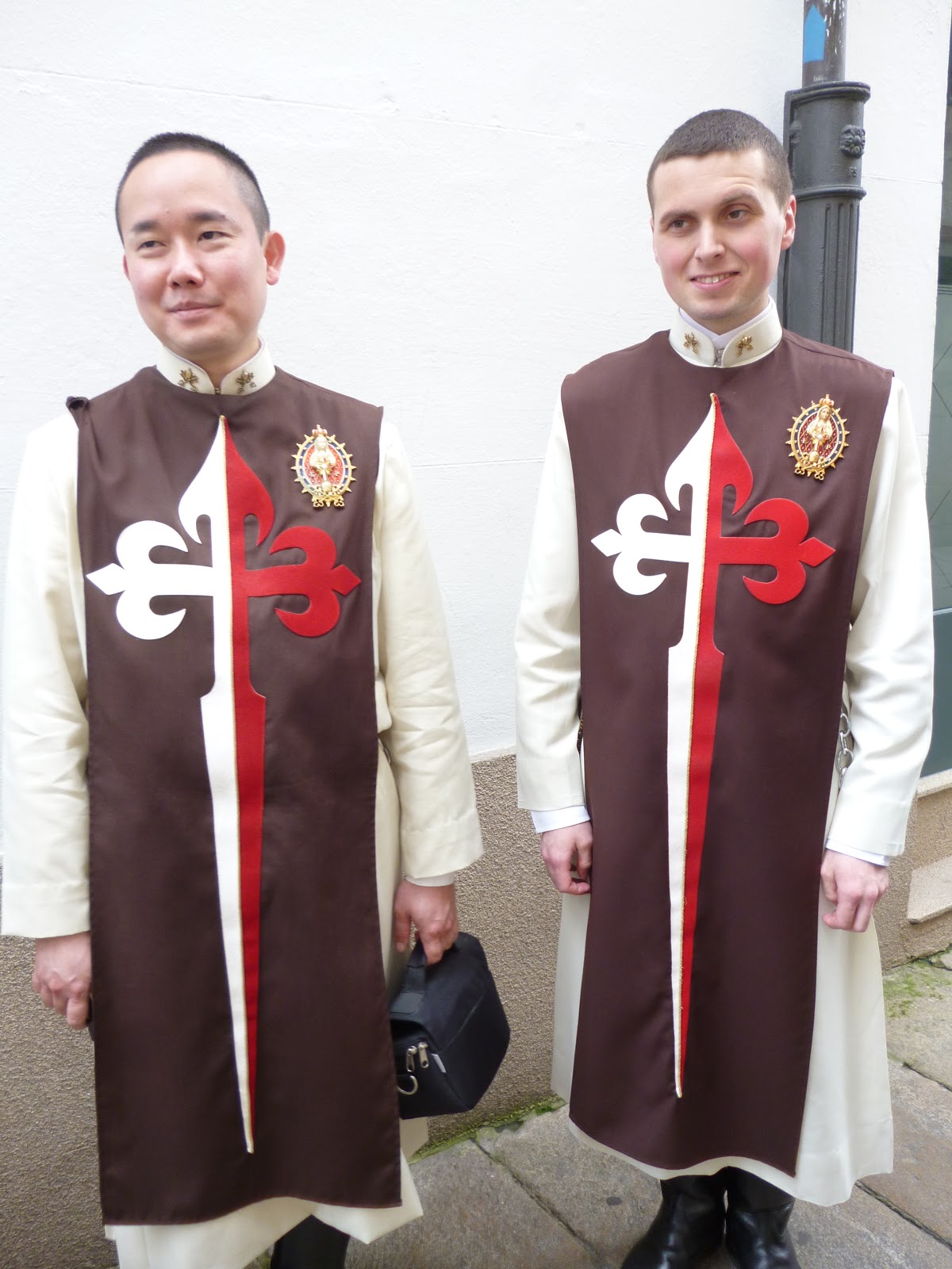 we praten met 2 Portugese geestelijken, gekleed in Jacobuspij en herkennen nu ook de beeltenissen op taarten en souvenirs.