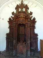 De kerk is overdadig versierd.  Het is een hoog - beetje gothisch - en ongezellig gebouw waar ik niet zo gek op ben. Ik houd meer van het knusse, ronde Romaanse bouwwerk.